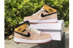 Working on a mid-top profile that has risen in popularity over the recent year, the supple suede and tumbled-leather upper boasts a combination of bronze, mustard yellow, and Particle Beige overlays for a premium look. Nike's iconic Swoosh logo elegantly shoots across the lateral and medial sides in a stealthy black hue for a striking pop of contrast. Maintaining the features we know and love from the basketball sneaker is the Jumpman branded tongue and insoles, and Michael Jordan's famed wings logo on the collar completes the look.