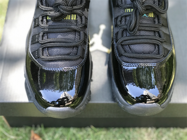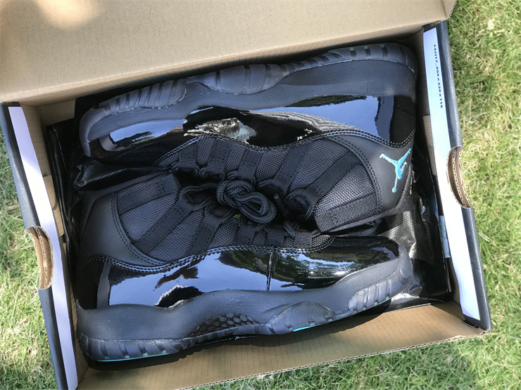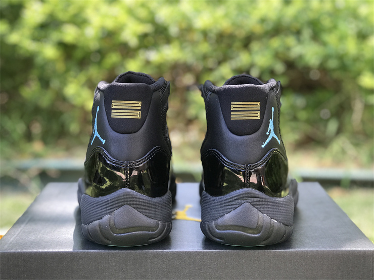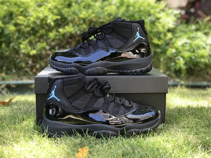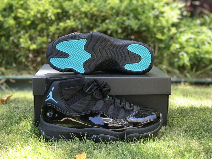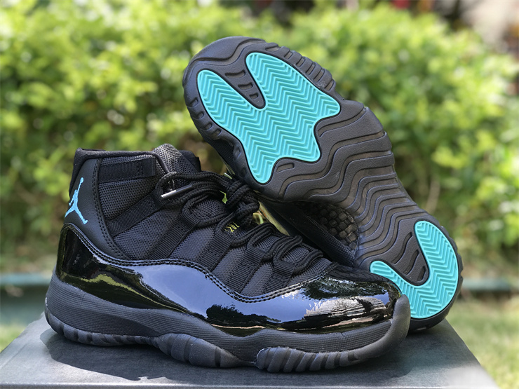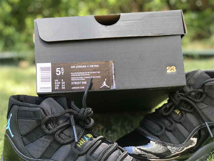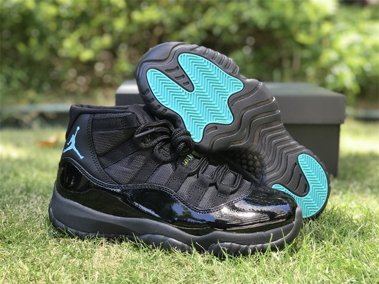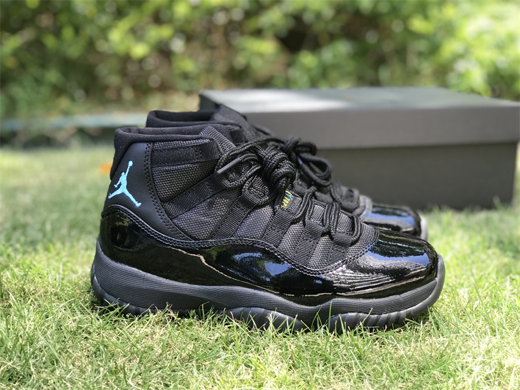 The Air Jordan 11 Retro ‘Gamma Blue’ released in 2013 as Jordan Brand’s requisite AJ11 holiday release. The non-OG colorway features a sleek black finish throughout the upper, constructed from a traditional blend of ballistic mesh and shiny patent leather. Contrasting pops of color arrive via the sneaker’s branding hits, which include a turquoise Jumpman and ‘23’ stamped in Varsity Maize on the heel tab. A cushy Phylon midsole is enhanced with a top-loaded full-length Air unit and supported by a carbon fiber spring plate. A translucent rubber outsole utilizes herringbone traction pods for superior grip.