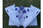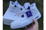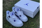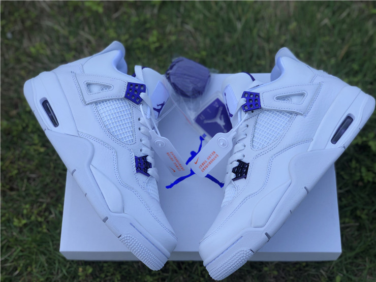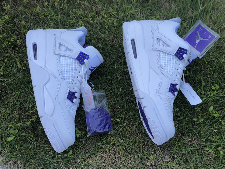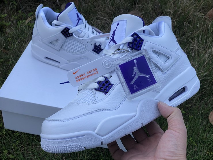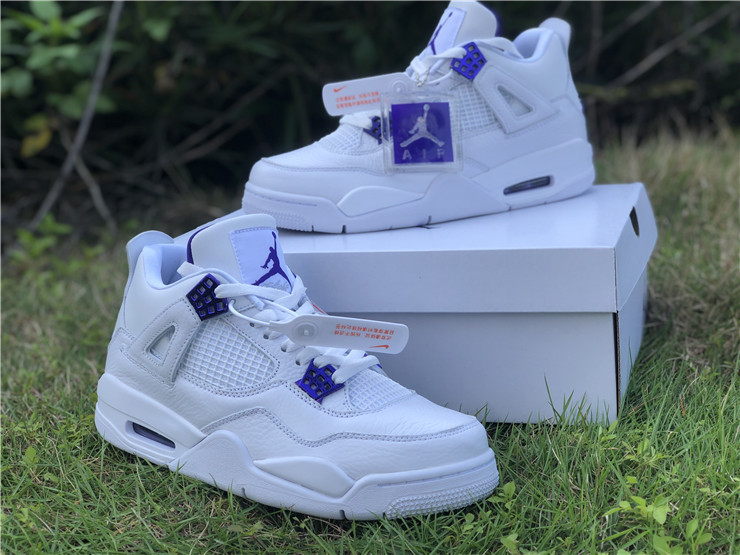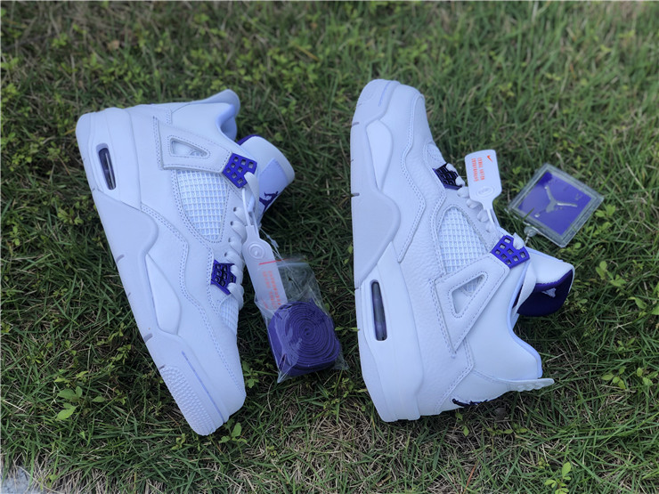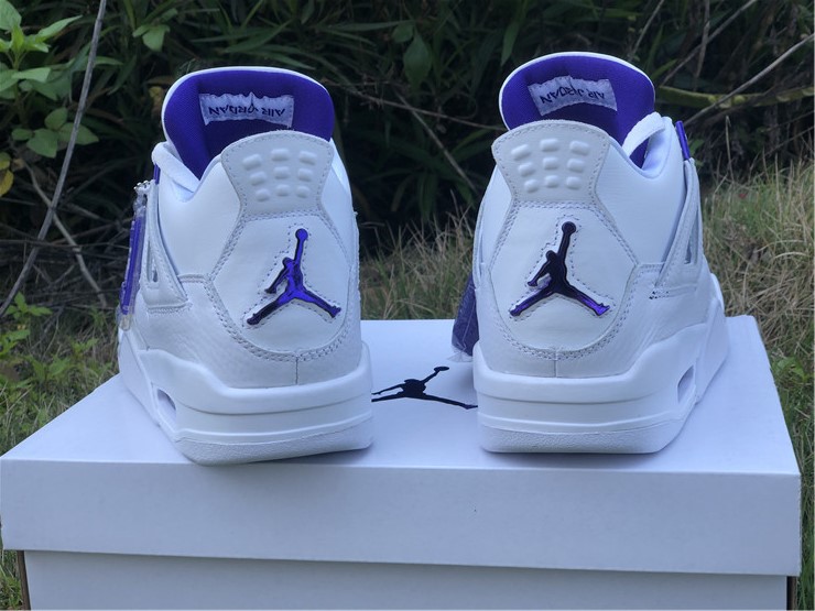Launching as part of a four-piece Metallic Pack, the Air Jordan 4 Retro ‘Purple Metallic’ showcases a simple two-tone color scheme on the classic mid-top silhouette. The sneaker utilizes a pristine white leather build, accented with violet pops of contrasting color on the molded eyelets, visible Air sole unit and exterior branding hits, including signature Jumpman logos at the woven tongue tag and heel panel.