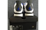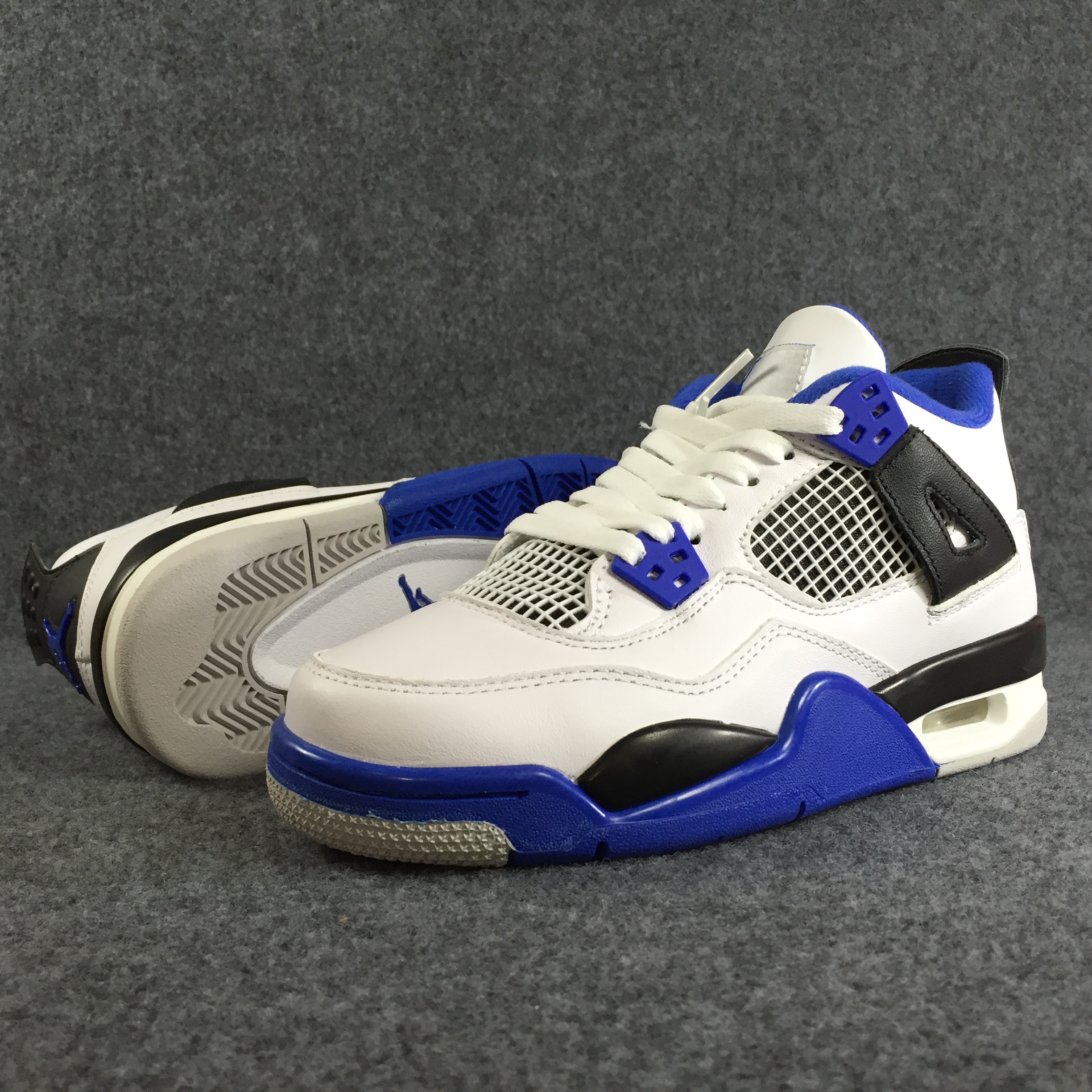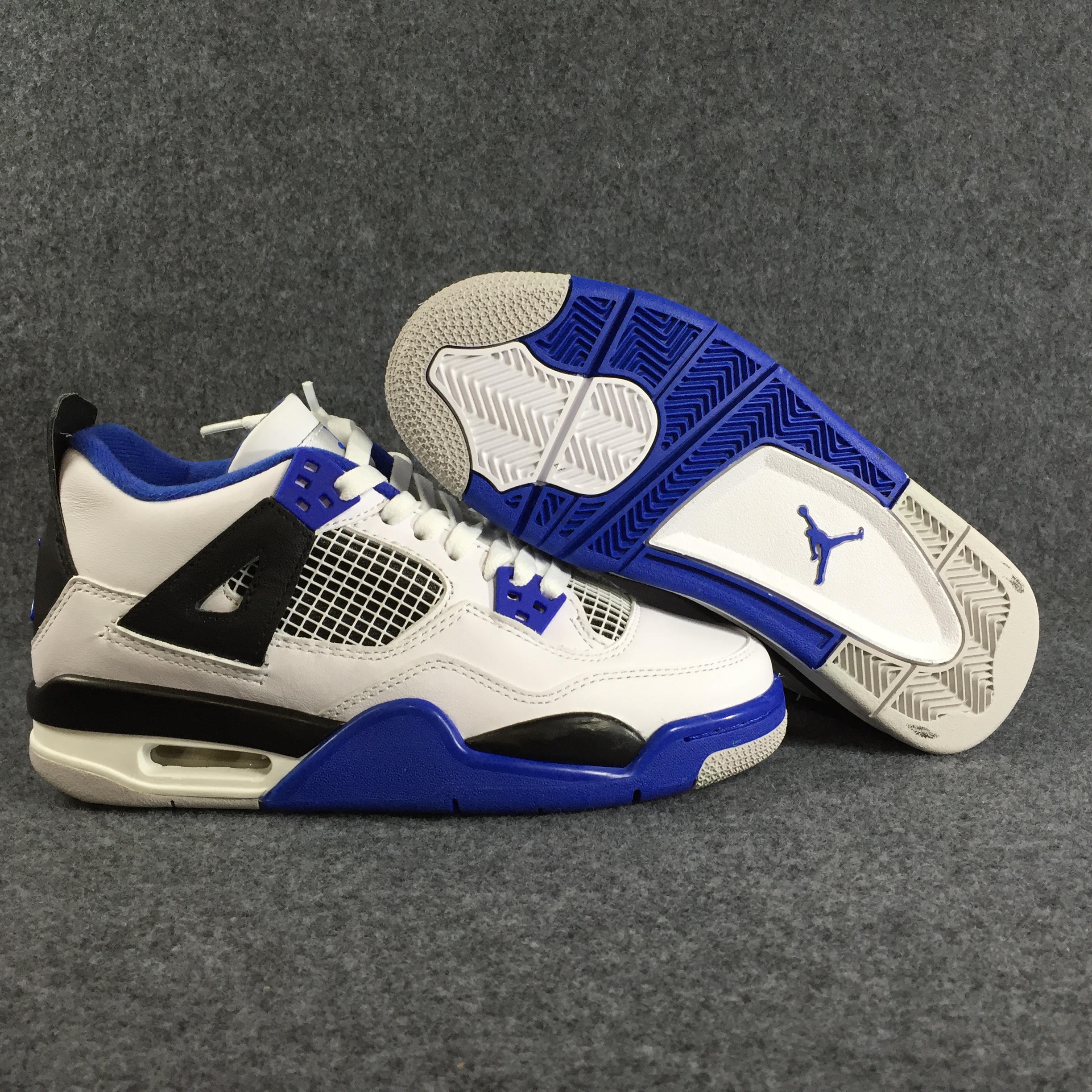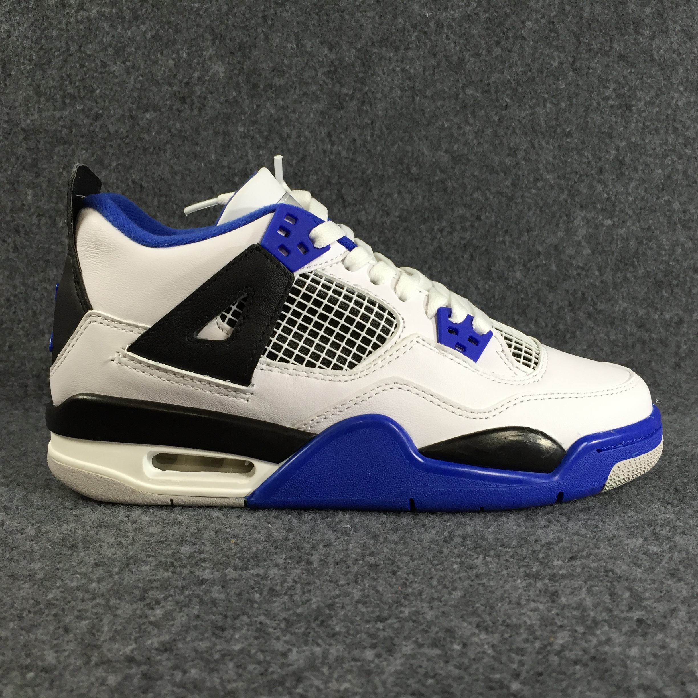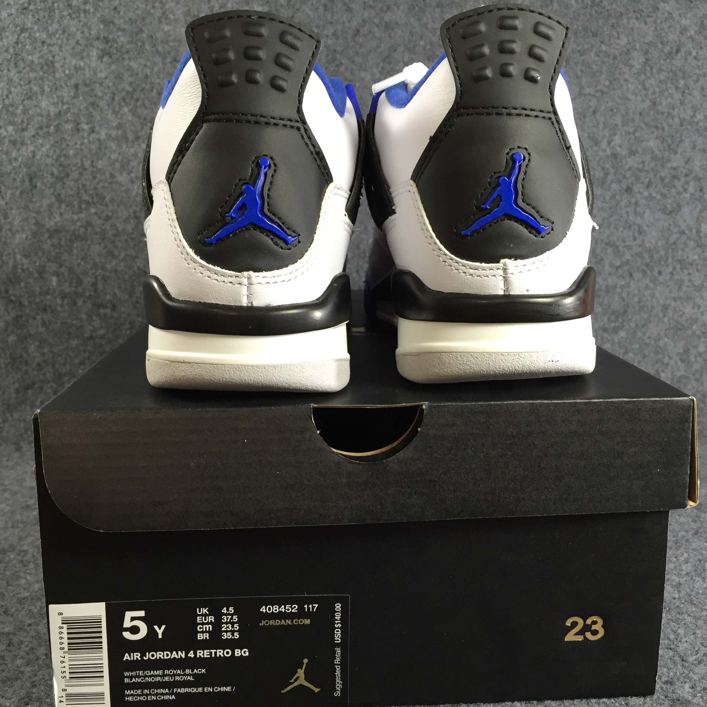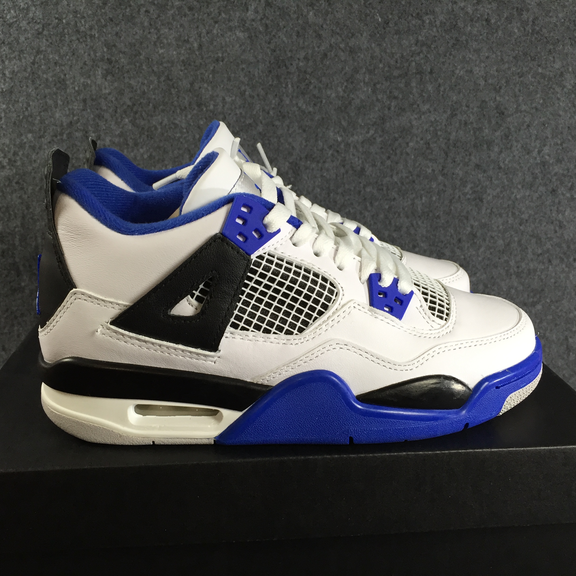 The Air Jordan 4 Retro GS 'Motorsports' is inspired by a 2006 friends and family colorway created for the 4th anniversary of the Michael Jordan's Jordan Motorsports team. Released to the general public in March 2017, the Grade School-sized sneaker incorporates the teams' white, black, and Game Royal colors, but removes the Mars Blackmon accent that graced the heel of the 2006 version. An alt version, the Air Jordan 4 Retro BG 'Motorsports Alternate,' was released a few months later in a black colorway.