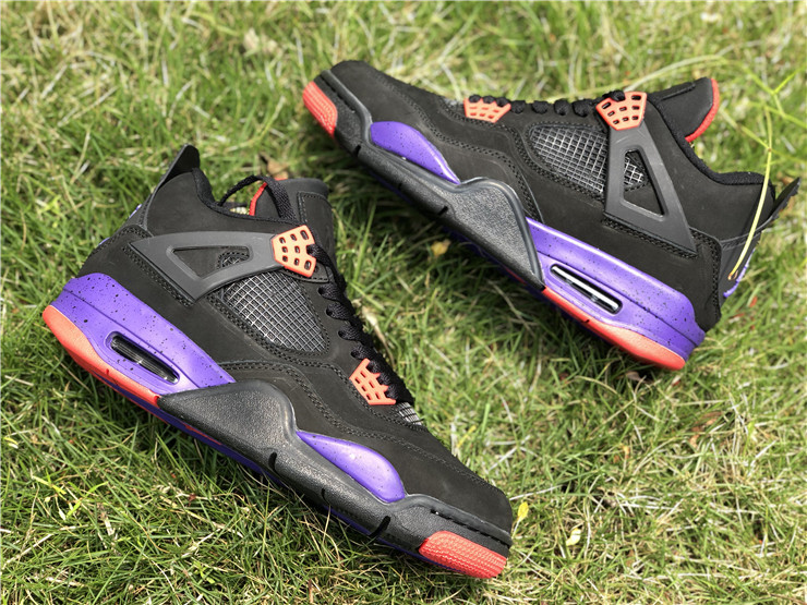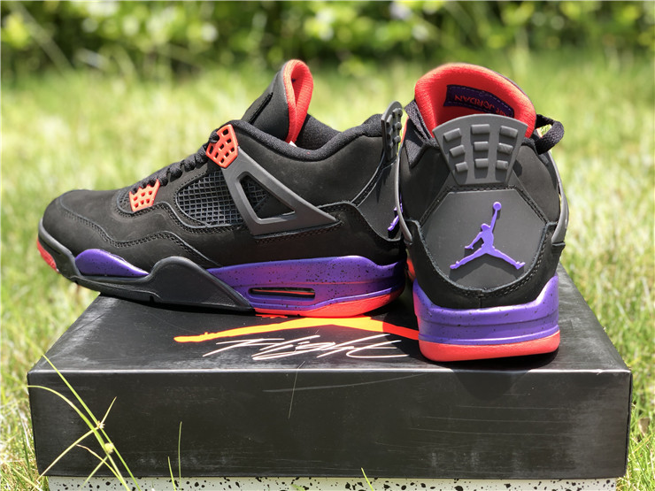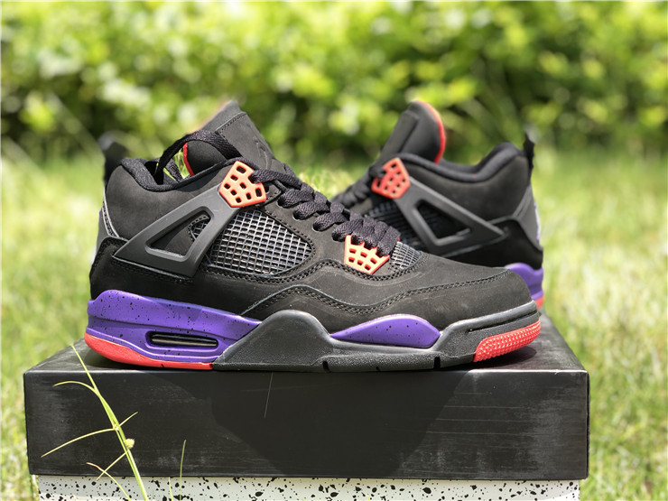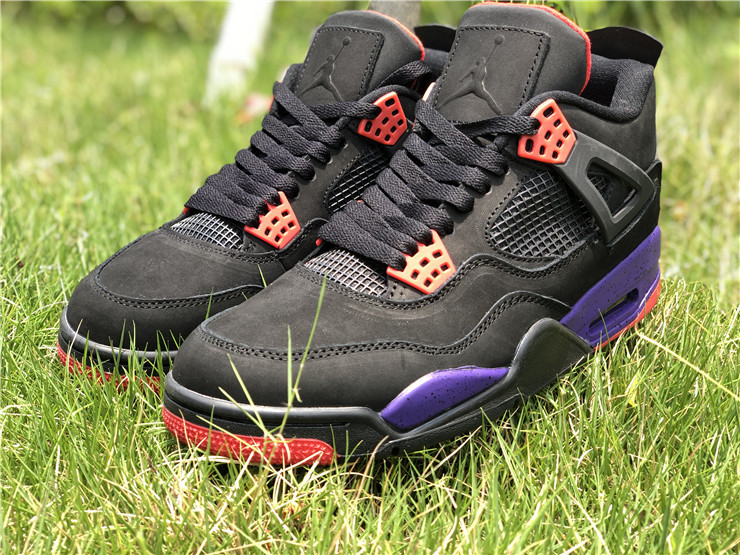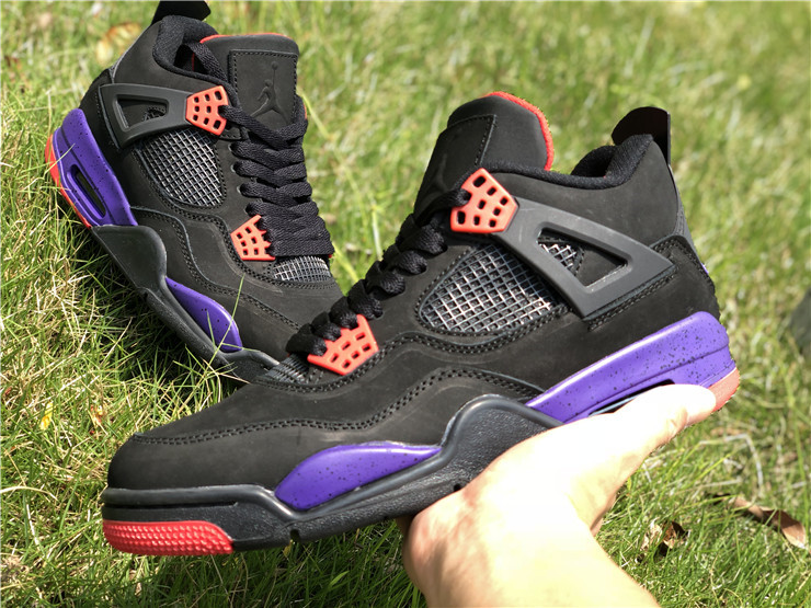 The Air Jordan 4 Retro NRG ‘Raptors - Drake Signature’ was a surprise launch on the SNKRS app in June 2019. Featuring the same colorway as the first 'Raptors' release, the main difference in this version is the patch on the tongue. Featuring a purple Jumpman logo and Drake's signature below in red, these match up even more with the Toronto Raptor team colors. The rest of the shoe is similar to the previous version: the upper features black nubuck, with University Red and Court Purple details throughout the shoe.