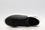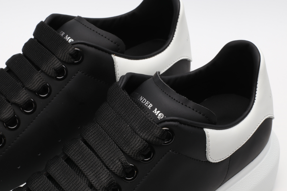 Black calf leather lace-up sneaker trimmed with white calf leather heel detail. The sneaker features large flat laces and an oversized white rubber sole. Finished with an Alexander McQueen signature on the tongue and heel counter. The sneakers come with an additional lace set.To lessen our environmental impact and to reduce cotton consumption, we will no longer be providing a dust bag with our sneakers.