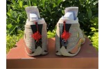 Developed in partnership with Edison Chen’s streetwear brand, the CLOT x Air Jordan 14 Retro Low ‘Terracotta’ is the follow-up effort to the Air Jordan 13 Low ‘Terracotta’ from 2018. Like its predecessor, the low-top features a tan suede upper with embossed detailing that mimics protective armor — a nod to the thousands of life-size clay soldiers buried alongside the first emperor of China. Mismatched Jordan and CLOT branding adorns the tongue, designed to mimic an unfurled ancient scroll. Hanging off the heel is red Chinese knot, the end of which is threaded through a coin that’s stamped with a Chinese idiom for prosperity and happiness.