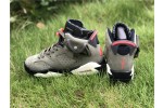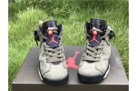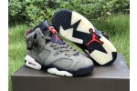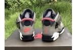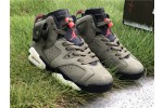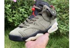 The Travis Scott x Air Jordan 6 Retro 'Olive' represents a collaboration between the Houston based rapper and Jordan Brand. This take on the AJ 6, which Scott debuted while performing during halftime of Super Bowl 53, released in October 2019. It features a Medium Olive, black, Sail and University Red colorway along with several unique elements: a small pocket with a snap on the collar, a nubuck and suede upper, Scott's 'Cactus Jack' logo on the heel and a glow-in-the-dark translucent outsole.